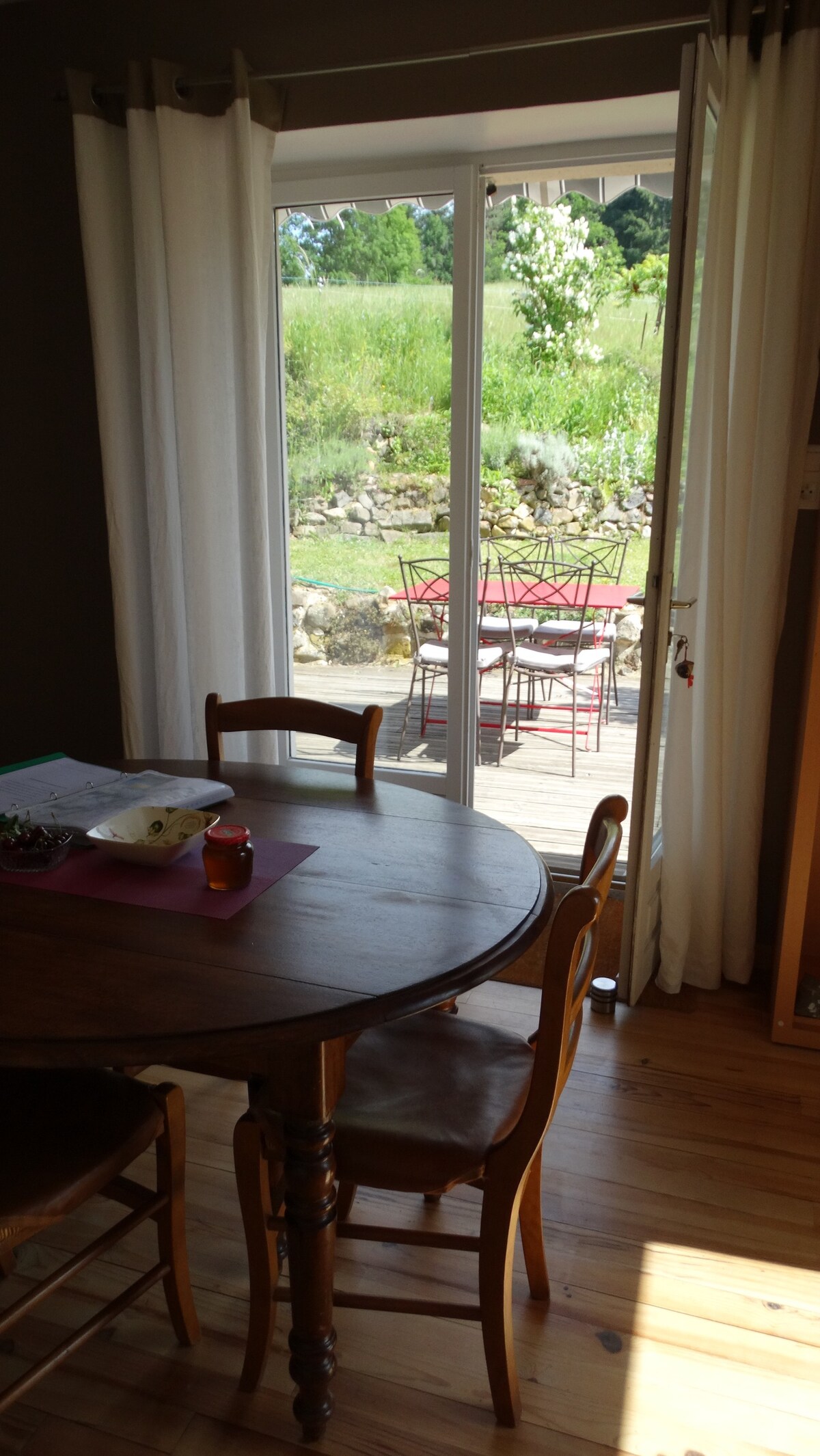 La salle à manger donne sur la terrasse |