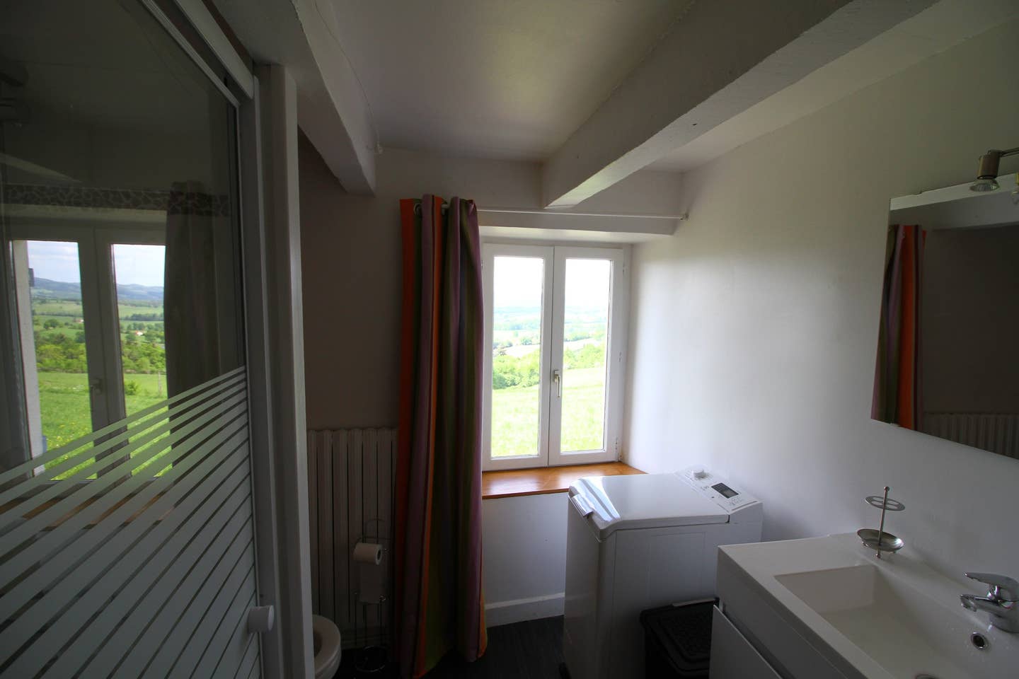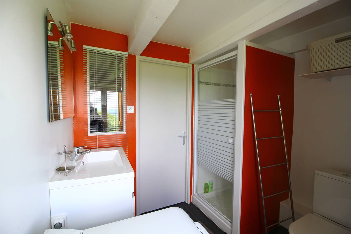 La salle de bain wc avec douche et lave linge |